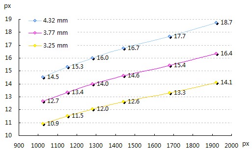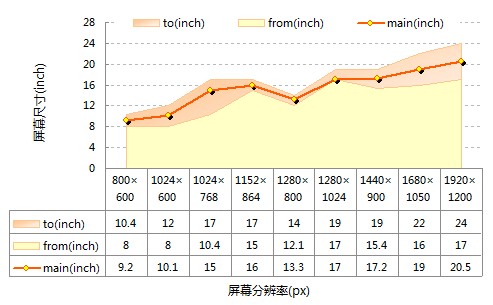 計算不同顯示器上的字號大小 用屏幕的物理寬度除以像素寬度,就可以得到每個像素的寬度。然后用指定的文字物理大小除以這個數,就可以得到在不同分辨率下所需的字號。例如要顯示4.32mm見方的文字,各分辨率下分別需要如下的字號(對筆記本和臺式機分別統計):![]() 不同分辨率下需要的字號 可以看出筆記本和臺式機的尺寸相差很大,為方便使用,使用各分辨率的主流尺寸或平均尺寸計算出指定字號在每個分辨率下所需的字號。(下圖去掉了基本只用在筆記本上的那些分辨率),以4.32mm、3.77mm、3.25mm為例(17寸1280*1024分辨率下的16、14和12號字):