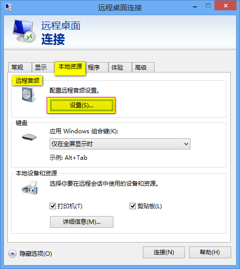 3、配置遠程音頻設置。本地資源 – 遠程音頻 – 設置。