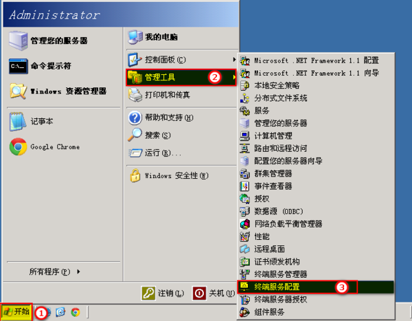 需要在云主機上進行的配置: 5、正常登錄云主機,允許“音頻映射”。步驟:開始 – 管理工具 – 終端服務配置。