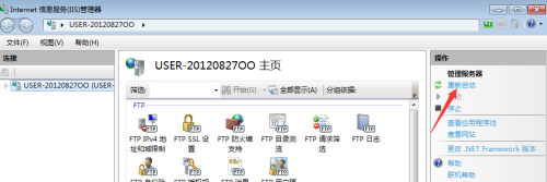 2、在開始菜單中搜索IIS,然后打開IIS,然后選擇重新啟動IIS也可以。