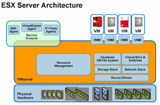 I/O協議棧:VMware選擇性能,但是把I/O協議棧放到了hypervisor里面。不幸的是,VMware kernel是專有的,那就意味著VMware不得不開發和維護整個協議棧,會導致開發速度會減慢,你的硬件可能要等一段時間才會得到VMware的支持。