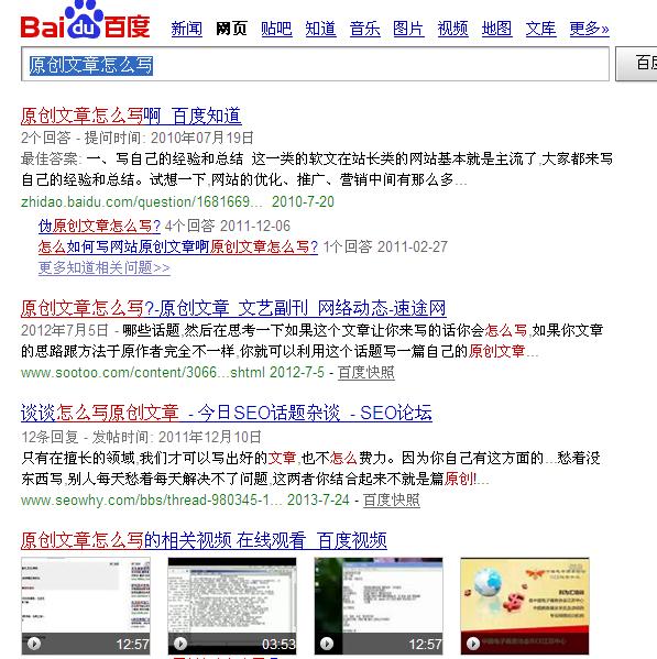 下面給大家舉例說明一下吧,假若你寫的一篇文章是關(guān)于原創(chuàng)文章怎么寫的話,那么你寫的文章被收錄幾率到底高還是低?首先,我們通過百度搜索引擎搜索:原創(chuàng)文章怎么寫