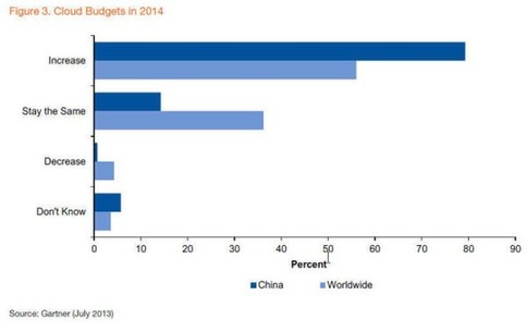 80%的中國企業計劃在2014年增加云計算預算。