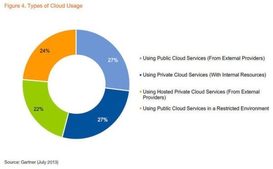 通常業內人士的都認為中國企業更加偏愛私有云,但Gartner的報告顯示中國企業對公共云和私有云的選型意向比較均衡。