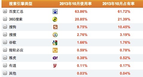 而在今年10月,市場已發生了變化。除百度、谷歌的份額下滑補充了360搜索外,搜狗和搜搜的市場份額也均下滑。其中,搜狗市場份額從9月的10.54%下滑至10.45%,下滑了0.09個百分點,而此前搜狗的市場份額是每月增長0.2個百分點。也就是說搜狗“里外里”共有0.3個百分點的逆差給了360。