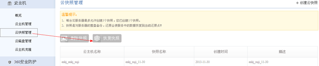 云主機快照管理功能