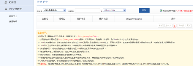 最近,發現主機后臺添加了一個360安全防護功能,應該是360和IDC商的一個合作吧。360這幾年的動作挺大的,先后建立安全聯盟推廣自己的產品。360真是一個讓人既愛又恨的公司,不得不說他們他們安全產品還是很不錯的。