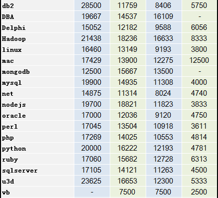 另外在移動(dòng)開發(fā)類職位中,WP職位整體薪資都低于Android、iOS、Html5,這似乎也證明了WP的行業(yè)地位于android、iOS及Html5。