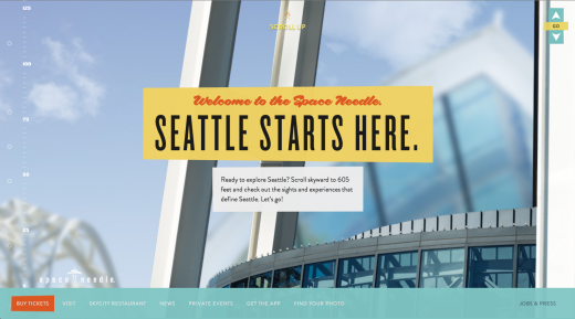 對于網(wǎng)站來說,擁有令人感到驚異的內(nèi)容總是非常關(guān)鍵,而利用這些內(nèi)容講故事更是一大優(yōu)勢。2015年的網(wǎng)站設(shè)計很可能聚 焦于如何為用戶講故事。比如,Space Needle(美國西雅圖地標(biāo)建筑太空針?biāo)┑木W(wǎng)站非常漂亮,可以通過使用講故事的方式介紹 Space Needle的有關(guān)事實,并以滾動翻頁的設(shè)計予以支持。Space Needle也證明2015年的另一種趨勢——互動。網(wǎng)站設(shè)計正添加更多 互動和動畫元素,以獨特和有吸引力的方式幫助介紹內(nèi)容。在網(wǎng)站設(shè)計中加入互動與動畫,可以為你的網(wǎng)站帶來令人驚訝的因素。比 如,Impossible Bureau網(wǎng)站的互動性就很強,可以對你的滾動和懸停做出回應(yīng)。