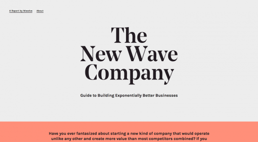 過去幾年中,網(wǎng)站設(shè)計中十分流行大標(biāo)題背景圖像,上面經(jīng)常有文字說明,這也是大多數(shù)訪客瀏覽網(wǎng)站時首先看到的東西。而在大標(biāo)題背景圖像如此流行的情況下,你的網(wǎng)站如何能脫穎而出呢?采取相反措施。近來出現(xiàn)的一些網(wǎng)站逆勢而行,即沒有大標(biāo)題背景圖像。我猜,他們這樣做不僅僅是不愿意追隨潮流,而且也在尋求提高網(wǎng)站的性能與速度。New Wave Company的網(wǎng)站就體現(xiàn)出這些特點。它使用大標(biāo)題歡迎訪客,大字體集中在網(wǎng)頁中心,但標(biāo)題后面沒有大背景圖片。這是一種高雅的做法,效果并不次于其他使用大背景圖像的流行網(wǎng)站設(shè)計。