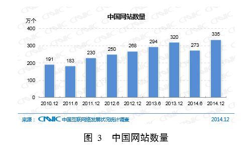 截至2014年12月,中國網站數量為335萬個,年增長4.6% 。