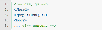 用戶端發(fā)送瀏覽請求后,服務(wù)器端一般要花銷200-500ms去處理這些請求,在此期間,用戶端瀏覽器處于等待狀態(tài),如果要減少用戶等待時間,可以在適當(dāng)?shù)奈恢檬褂胒lush,將已經(jīng)就緒的內(nèi)容推送到用戶端,這在php中很容易實(shí)現(xiàn)例如: