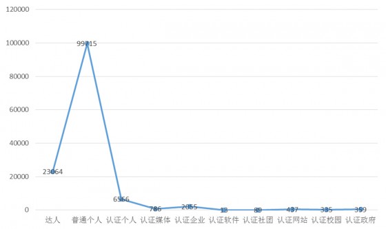 上圖可以看到,達人、普通個人、認證個人,是發原創微博的主力軍。而認證的媒體發得極少。微博上藍V媒體們,統共就發了786條,數據低到讓人瞠目結舌。倒是藍V企業們,還比較努力,發出來2055條。