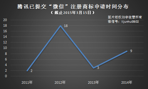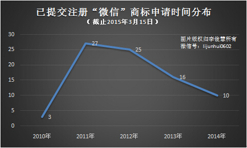 6、商標(biāo)“搶注”集中發(fā)生在“微信”面世首年