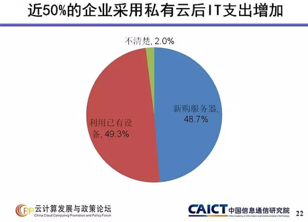 對(duì)于那些沒有部署私有云的受訪者,報(bào)告中指出,人員技術(shù)水平是影響他們部署私有云的最大障礙,企業(yè)的IT人員往往對(duì)私有云不夠了解,不同私有云解決方案間標(biāo)準(zhǔn)不夠統(tǒng)一。部分受訪者對(duì)私有云的部署周期、維護(hù)難度以及投資回報(bào)等方面抱有疑慮。而近50%的私有云用戶表示,自己的企業(yè)采用私有云后需要新添置
