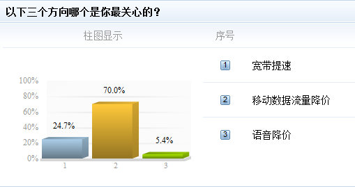 不過,網易科技的另外一項調查顯示,有45%的網民還是很關心運營商提速降費后壓力變大,利潤縮小,認為只有合理的收入才能提升服務。