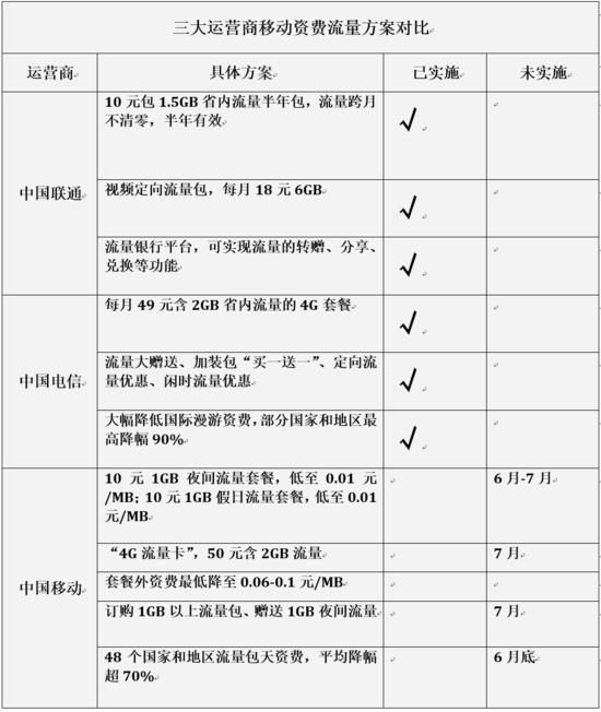 運營商提速降費方案提出已經一個多月,各項方案實施如何?網易科技對運營商客服人員進行了詢問調查,制作成了表格。
