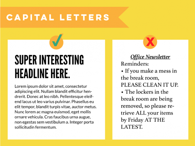 同樣,這是一個在英文情況下常見的設計誤區。在標題中全用大寫,這個沒問題,段落中如果偶有需要強調的地方用大寫也說的過去。但是在此之前,要保持約定俗成的最基本的使用習慣:標題大寫,正文小寫。