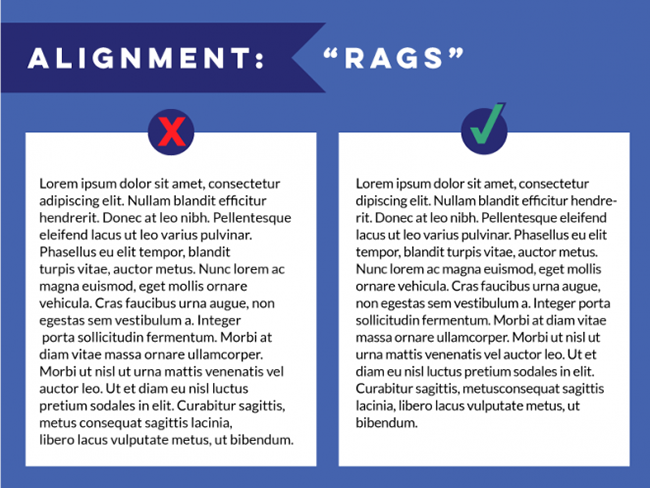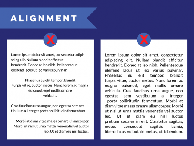設計原則中,對齊是最重要的幾項之一。對齊會讓文字排列有序而合理,視覺上統一而一致。不同的對齊方式混合在一起會產生隨機的間距,難看且閱讀困難。