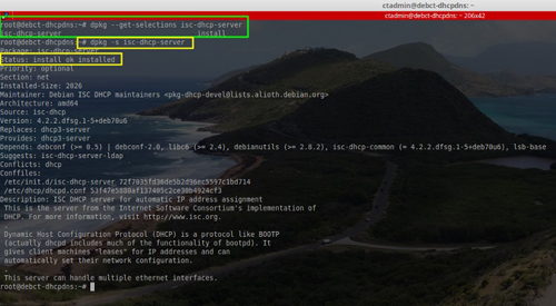 #apt-getinstallisc-dhcp-server[安裝theISCDHCPServer軟件]#dpkg--get-selectionsisc-dhcp-server[確認(rèn)軟件已經(jīng)成功安裝]#dpkg-sisc-dhcp-server[用另一種方式確認(rèn)成功安裝]