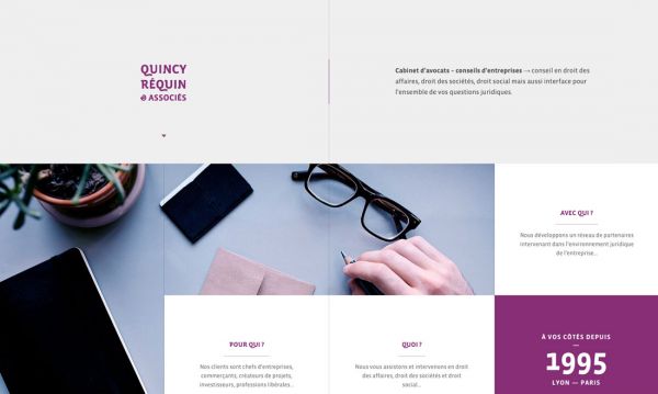 如果你的網站包含諸多頁面,其實并不推薦這種設計,盡管有的網站還真就是這么做的,并且做的不錯。Quincy Requin & Associes 的Q&A頁面就是這么設計的,每個問題鏈接到一個獨立的頁面。這種功能的獨特性使得這種設計顯得并不突兀。
