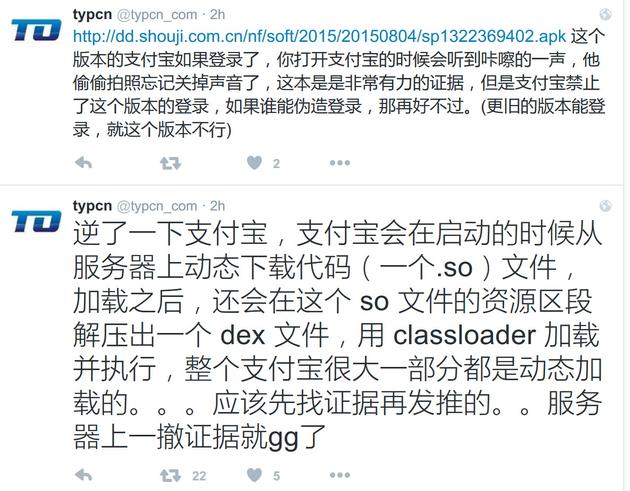 昨日,知乎上有網(wǎng)友曝光“支付寶Android版隱私門”事件,曾經(jīng)曝光“12306泄密事件”、上過CCTV的用戶typcn在Twitter中發(fā)文,稱“支付寶安卓版每隔X分鐘(