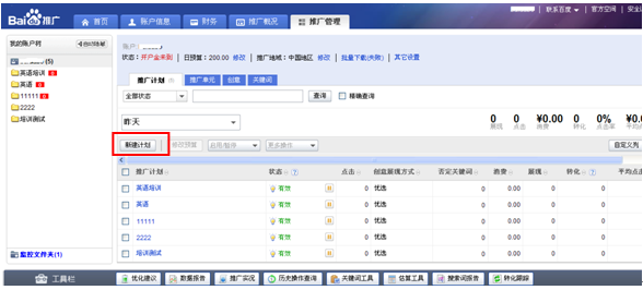 登陸推廣系統,點擊搜索推廣“進入”,選擇“推廣管理”,就可以開始新建計劃了。