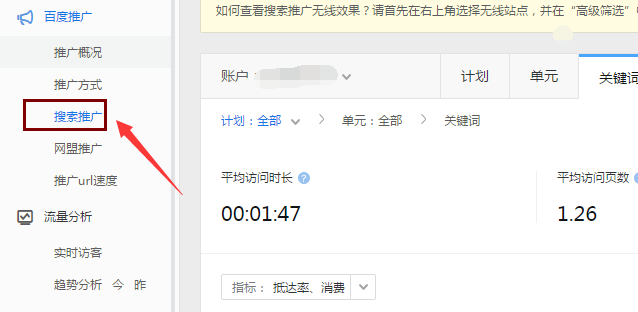 第二步:進入百度統計點擊左側欄目中“搜索推廣”