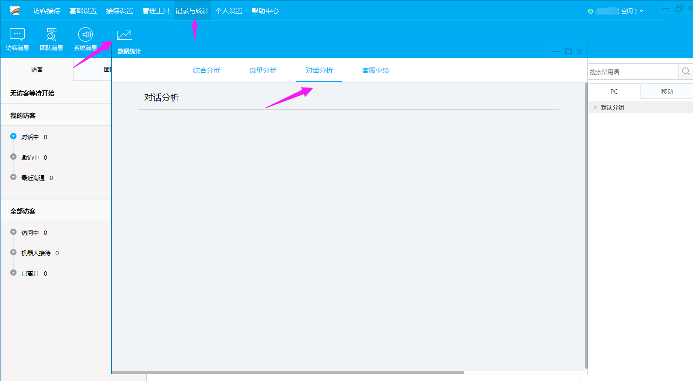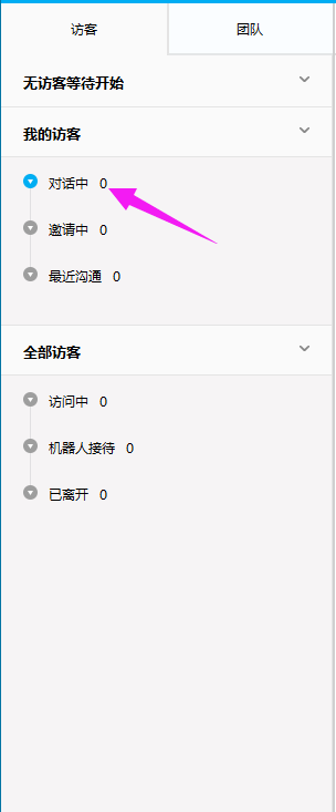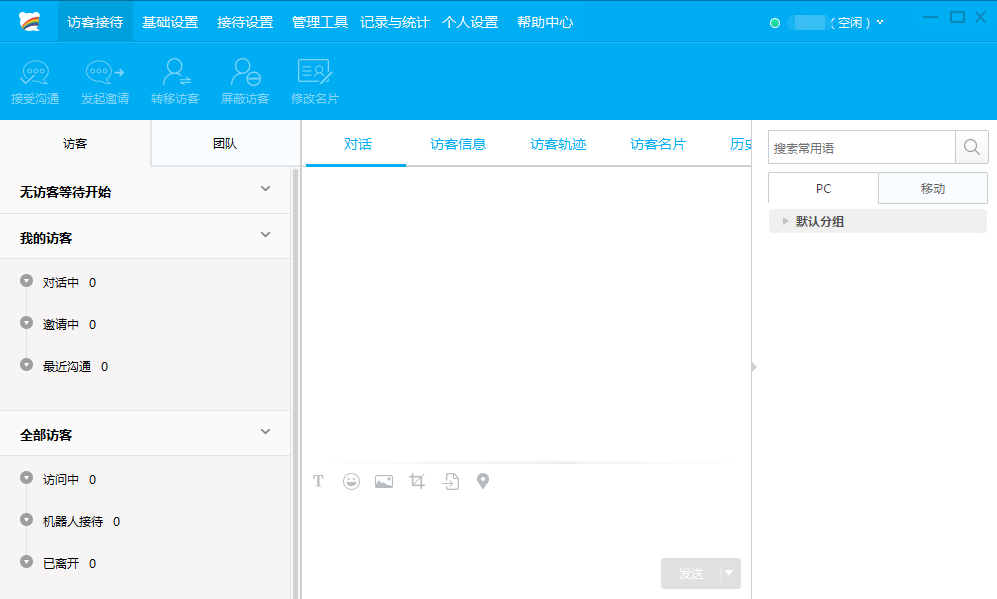 左邊是“對話列表”,顯示正在訪問的訪客以及一些訪問記錄。