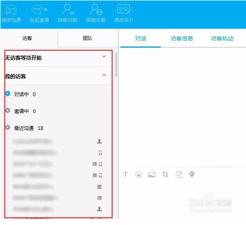 1.有對話中,邀請中,最近溝通中,等訪客信息。