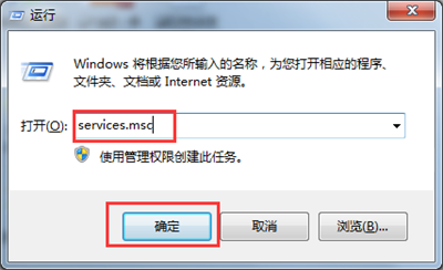 5、利用快捷鍵windows鍵+R鍵,在打開的“運行”對話框中,輸入“services.msc”,并點擊“確定”。