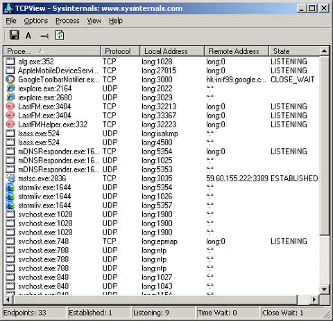 6、TcpView 端口監(jiān)控