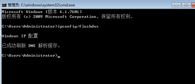 3、輸入完命令之后,按下電腦鍵盤上的回車鍵(Enter)即可開始清空DNS緩存了,如下圖所示: