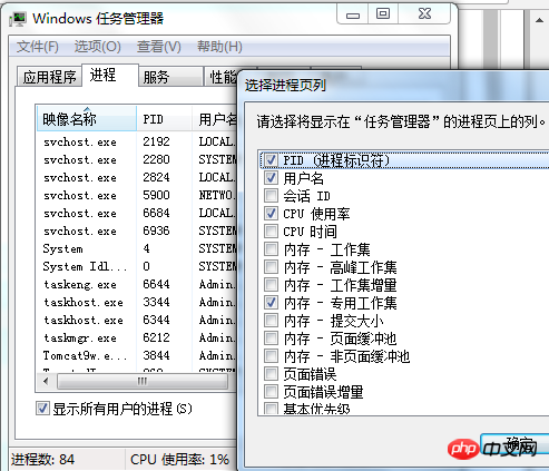 3.打開Windows任務(wù)管理器,點擊查看,點擊選擇列,勾起PID選項,如下圖所示: