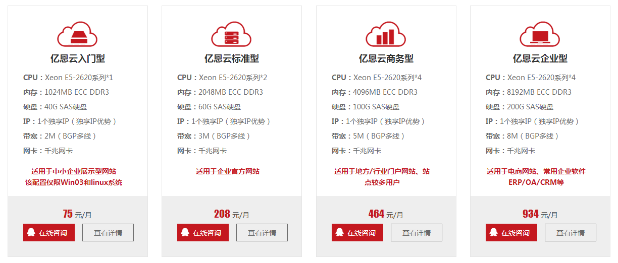 既然云服務器比起傳統服務器具有如此優勢,而且在后期使用中的靈活程度也相對較高,那么關于云服務器的價格問題,是怎樣的呢,專業云服務器租用一年的價格是多少呢?以下是億小恩找的關于億恩云在市場的云服務器價格,以此為例,希望能夠幫助您對云服務器的市場價格的了解更加深入。