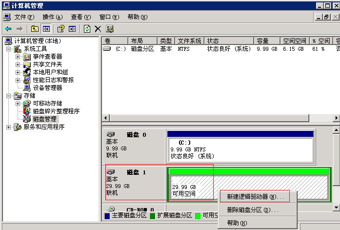 5.再次右鍵點(diǎn)擊磁盤,選擇新建邏輯驅(qū)動器.出現(xiàn)下圖: