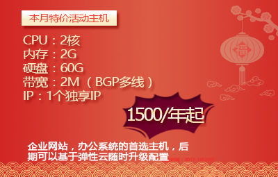 為了回饋新老客戶,也為了更好的滿足用戶的需求,億恩科技云主機(jī)推出了年前的最后一波優(yōu)惠活動(dòng),參加活動(dòng)的是“億恩云二型”,也是一直以來(lái)比較熱銷的配置之一。具體的活動(dòng)主機(jī)配置和活動(dòng)優(yōu)惠內(nèi)容如下: