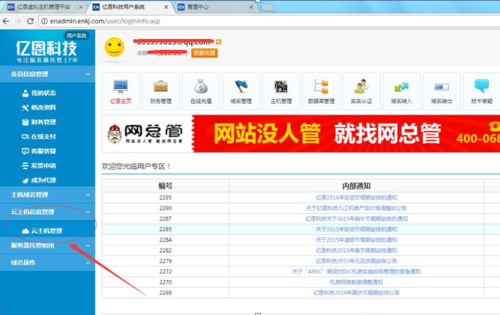 1、通過會員賬號登錄主機管理后臺,找到云主機管理選項。