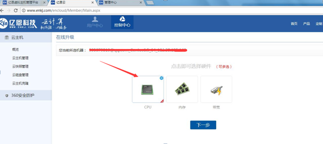 3、在升級業(yè)務(wù)里邊可以選擇CPU、內(nèi)存和帶寬升級。