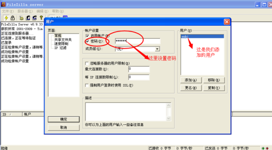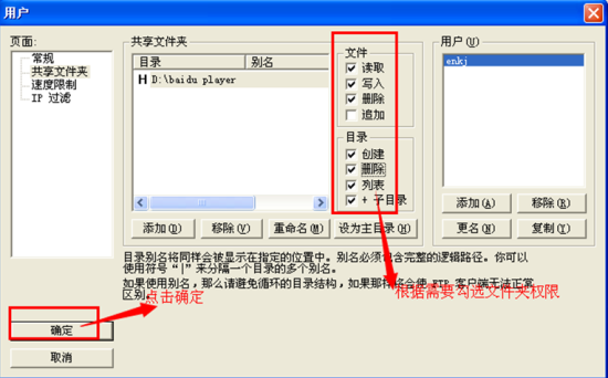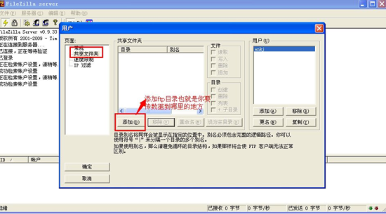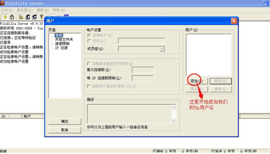 1、進(jìn)入用戶管理界面后開始設(shè)置FTP用戶名和目錄等相關(guān)的信息
