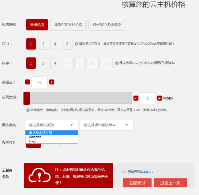 二、根據網站的基本要求對云主機的各項配置參數進行估算選擇