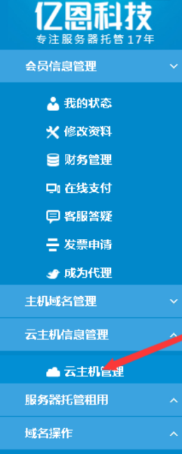二、在億恩用戶管理系統中找到并點擊云主機管理