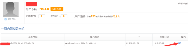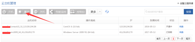 通常,購買的云服務器都是支持重啟操作的,以億恩云主機為例,是可以直接在后臺管理中實現重啟操作,具體步驟如下: