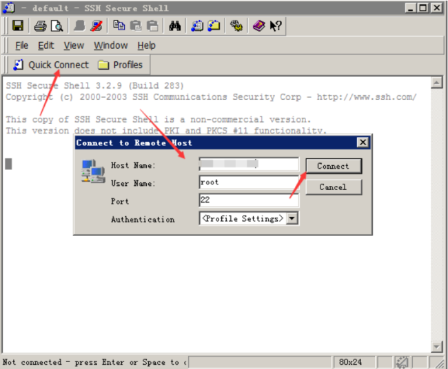 2、linux操作系統(tǒng),我們使用SSH Secure Shell Client連接,登陸進去看到命令行就可以操作了。